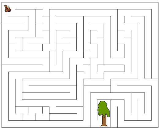 Aşağıdaki labirentte kelebeği ağaca ulaştırın.