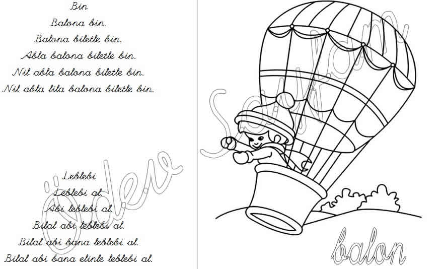 balon kelimesi okuma metni ve boyama çalışması 2. grup sesler 1. sınıf okuma yazma öğreniyorum