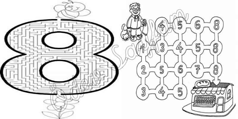 8 sayısı boyama bulmaca etkinliği 1. sınıf rakamları öğreniyorum