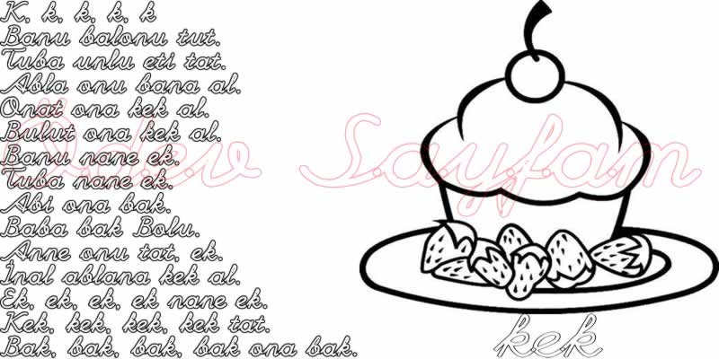 kek metni ve kek kelimesi boyama 3. grup sesler k harfi 1. sınıf okuma yazma öğreniyorum