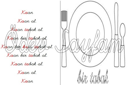 kaan okuma metni bir tabak boyama çalışması 3. grup sesler k harfi çalışması 1. sınıf okuma yazma öğreniyorum