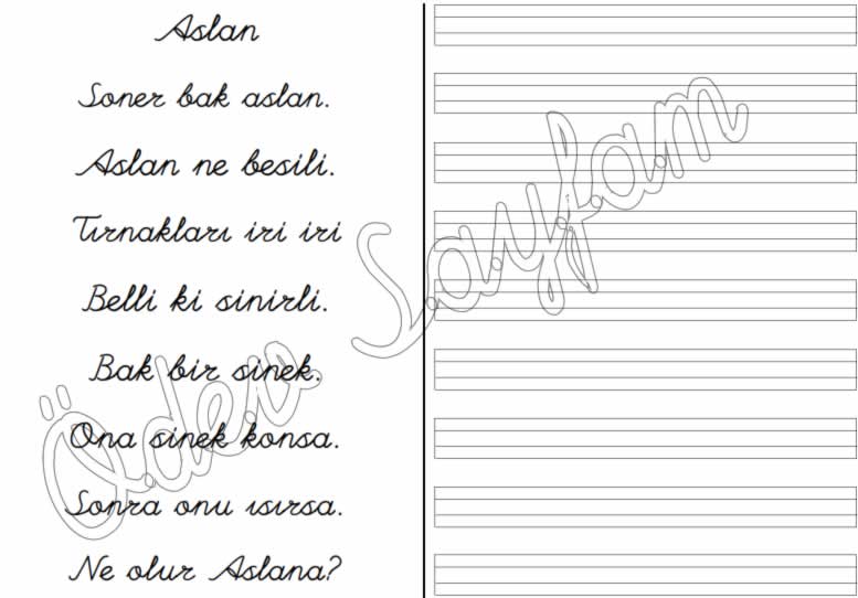 s sesi aslan okuma ve yazma metni 3. grup sesler harfler 1. sınıf okuma yazma öğreniyorum ilk okuma