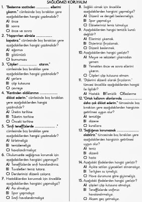 sağlığımızı koruyalım konusu 2. sınıf Hayat Bilgisi, 2. sınıf Hayat Bilgisi Okul Heyecanım teması sağlığımızı koruyalım testi