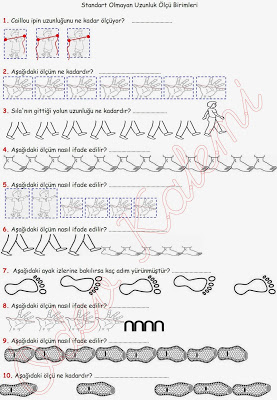 standart olamayan uzunluk ölçü birimleri çalışması (etkinliği) 2. sınıf Matematik Dersi, 2. Sınıf Matematik Dersi Ölçüler uzunluk ölçüleri standart olmayan uzunluk ölçüleri(doğal uzunluk ölçüleri) soruları konu pekiştirme(karış, kulaç, parmak, adım ve ayak)