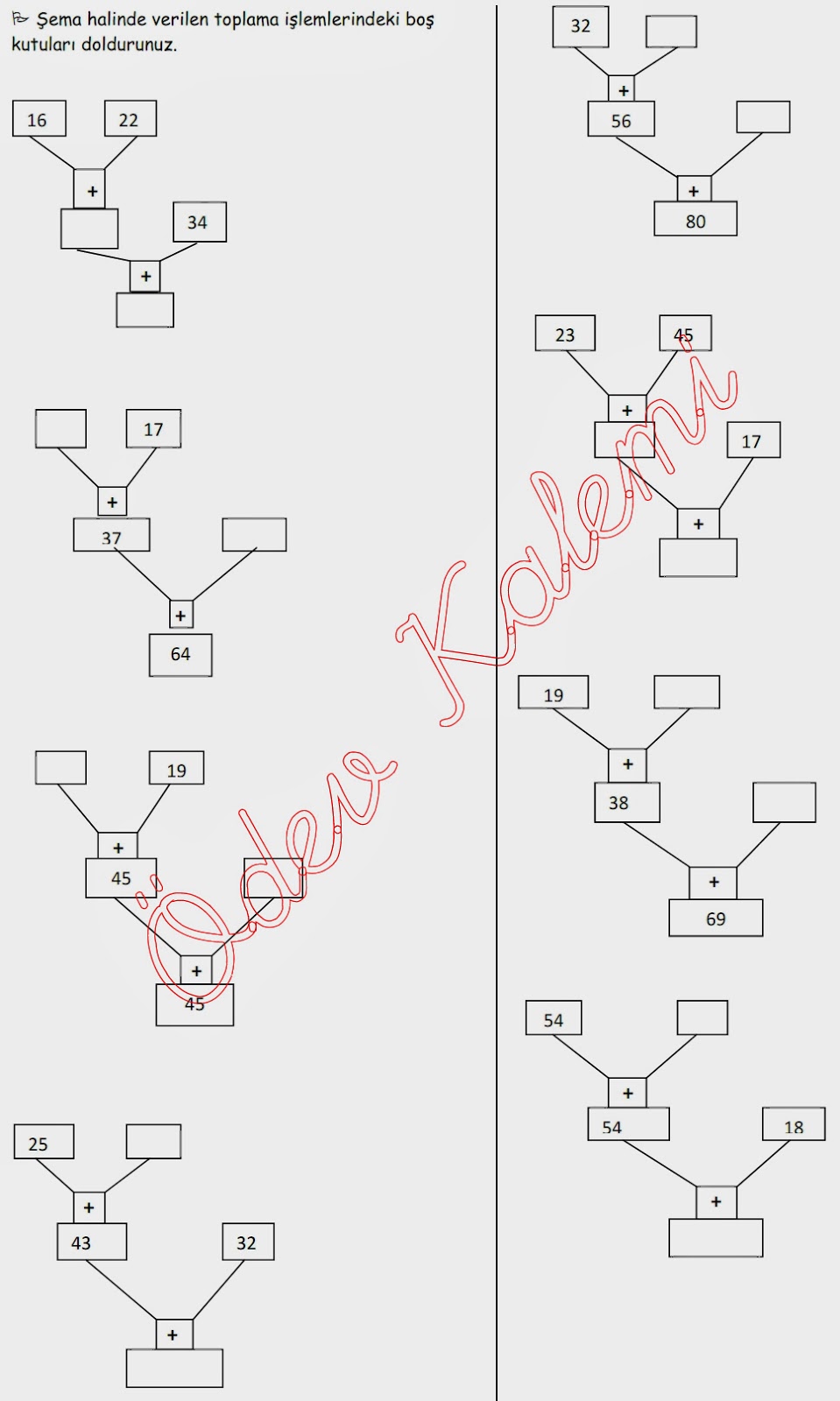toplama işlemleri şema 2. sınıf matematik dersi, 2. sınıf matematik dersi toplama konusu iki basamaklı doğal sayılarda eldeli toplama işlemleri