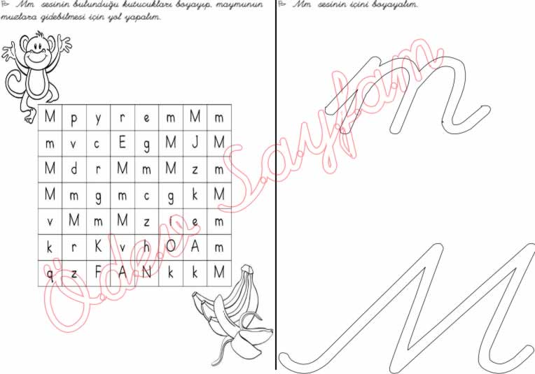 m harfi bulmaca çalışması 2. grup sesler 1. sınıf okuma yazma ev ödevi etkinliği