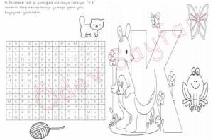 k sesi bulmaca ve boyama çalışmaları dik temel harfler 1. grup sesler elakin