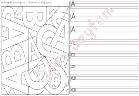 abc boyama A a yazma çalışmaları dik temel harfler 1. grup sesler 1. sınıf okuma yazma öğreniyorum