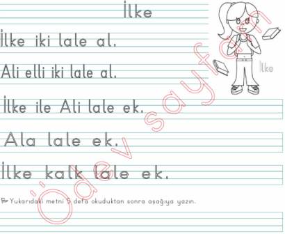 İlke okuma ve yazma metni dik temel harfler 1. grup sesler 1. sınıf okuma yazma öğreniyorum
