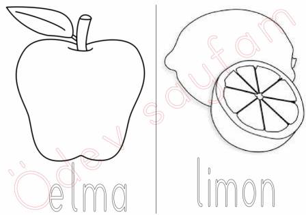 elma limon renkli kalem boyama etkinlikleri dik temel harfler 2. grup sesler 1. sınıf okuma yazma öğreniyorum