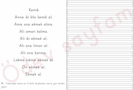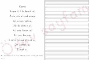 kemik okuma yazma metni dik temel harfler 2. grup sesler 1. sınıf okuma yazma öğreniyorum