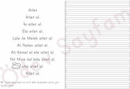 atlet okuma metni dik temel harfler 2. grup sesler 1. sınıf okuma yazma öğreniyorum