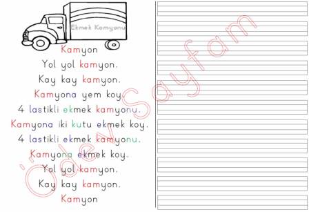 kamyon okuma ve yazma metni dik temel harfler 2. grup sesler 1. sınıf okuma yazma öğreniyorum