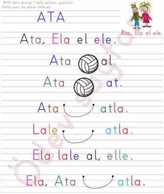Ata okuma metni dik temel harfler 2. grup sesler 1. sınıf okuma yazma öğreniyorum