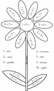 toplama göre boyama toplamları 10 geçmeyen toplama işlemleri papatya 1. sınıf matematik dersi