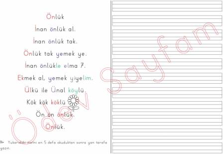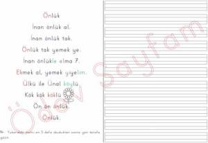 önlük okuma ve yazma metni dik temel harfler 3. grup sesler 1. sınıf okuma yazma öğreniyorum