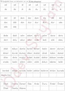 d sesi heceler ve kelimeler tablo dik temel harfler 3. grup sesler 1. sınıf okuma yazma öğreniyorum