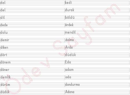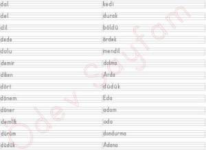 d sesi kelimeler yazma dik temel harfler 3. grup sesler 1. sınıf okuma yazma öğreniyorum