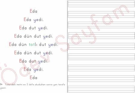 Eda okuma ve yazma metni dik temel harfler 3. grup sesler 1. sınıf okuma yazma öğreniyorum