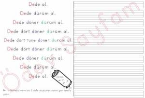 dede okuma yazma metni dik temel harfler 3. grup sesler 1. sınıf okuma yazma öğreniyorum