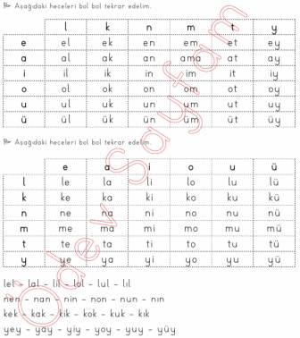 dik temel harfler ilk 2 grup ikili heceler 1. sınıf okuma yazma öğreniyorum