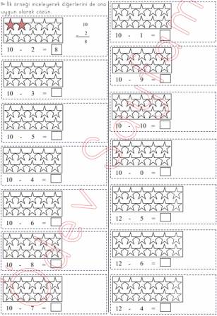 şekilli yıldız boyama örnek açıklamalı çıkarma işlemleri etkinliği 1. sınıf matematik dersi