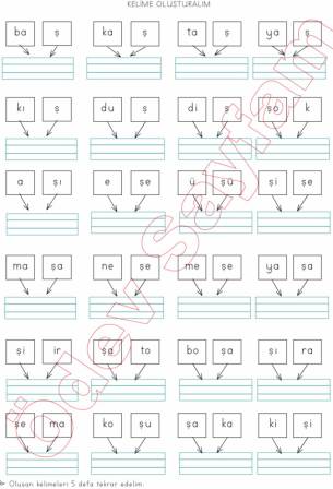 ş sesi dik temel harfler hecelerden kelimeler oluşturma 4. grup sesler 1. sınıf okuma yazma öğreniyorum