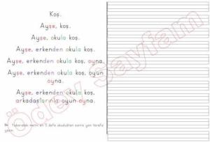 koş okuma ve yazma metni ş sesi dik temel harfler 4. grup sesler 1. sınıf okum ayazma öğreniyorum