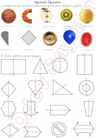 kesirler konusu bütün ve yarım kavramları 1. sınıf matematik dersi