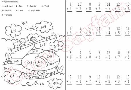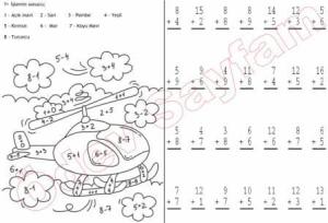 toplama işlemleri ve boyama çalışması 1. sınıf matematik dersi