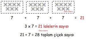 - Bahçemizde 7 gül vardır. Güllerden 3 katı kadar da lale vardır. Bahçemizde toplam kaç çiçek vardır?