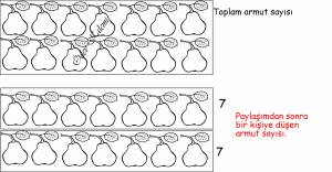 4. Arzu, aldığı 15 elmanın 3 tanesini yedi. Kalan elmaları da 3 arkadaşına paylaştırdı. Her arkadaşının payına kaç elma düştü?
