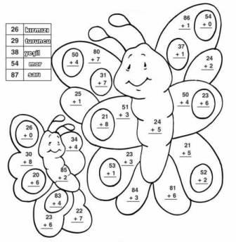 2. sınıf matematik dersi toplama işlemleri ve boyama çalışması kelebek