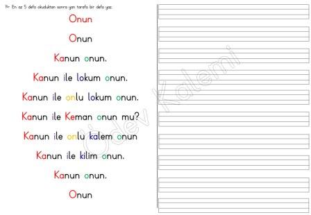 1. sınıf ilk okuma yazma etkinlikleri 2. grup harfler sesler heceler kelimeler metinler onun okuma yazma çalışması
