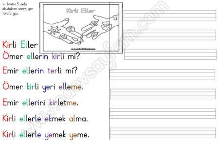 1. sınıf ilk okuma yazma etkinlikleri 3. grup sesler r harfi kirli eller okuma ve yazma metni