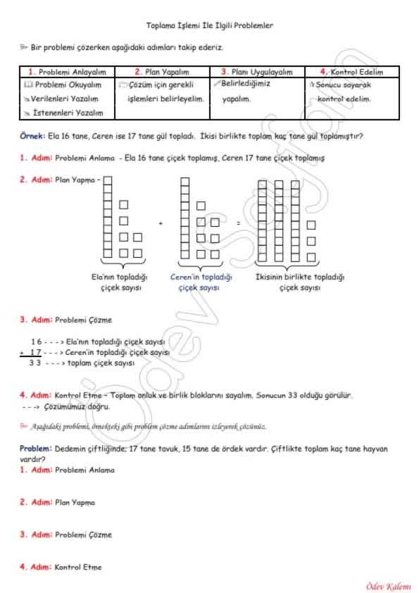 2. sınıf matematik dersi toplama işlemi problemleri konu anlatımı örnek soru çözümlü