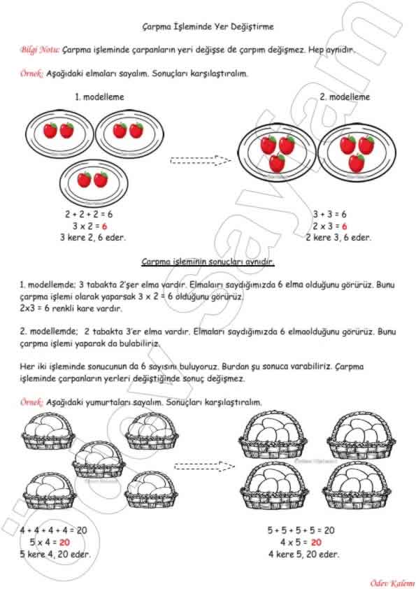2. sınıf matematik dersi doğal sayılarla çarpma işlemi terimler yer değiştiriyor