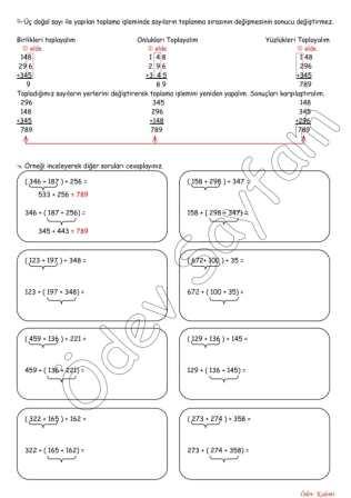 3. sınıf matematik dersi toplama işleminde toplananların yerleri