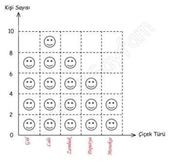 Yukarıdaki grafikte bir okulun 3. Sınıf öğrencilerinin “sevdikleri çiçekler anketinin” sonuçları grafikte gösterilmiştir.
