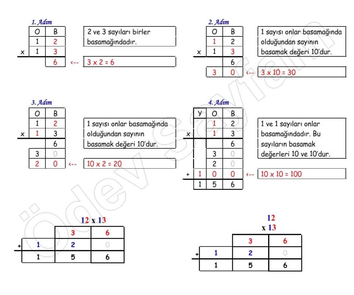 sınıf matematik dersi 2 basamaklı doğal sayılarla 2 basamaklı doğal sayıların çarpımı konu anlatımı örnek soru çözümlü