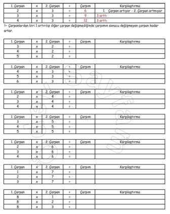 3. sınıf Matematik Dersi çarpma işleminde çarpanların artırılıp azaltılması
