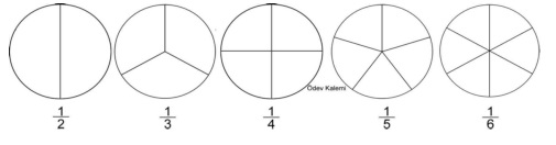 Bir daire 7 eş parçaya ayrılmış. Bu parçalardan birisi alınmış. Alınan kısım 1/7’dir. Bütün eş parçalarından birini gösteren kesir sayısına kesrin birimi denir.