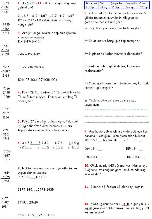 10. Aşağıda, resimleri verilen yiyecekler numaralarla gösterilmiştir.