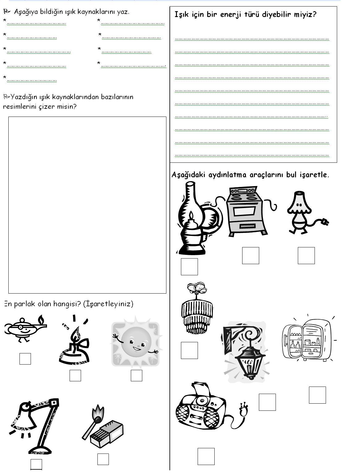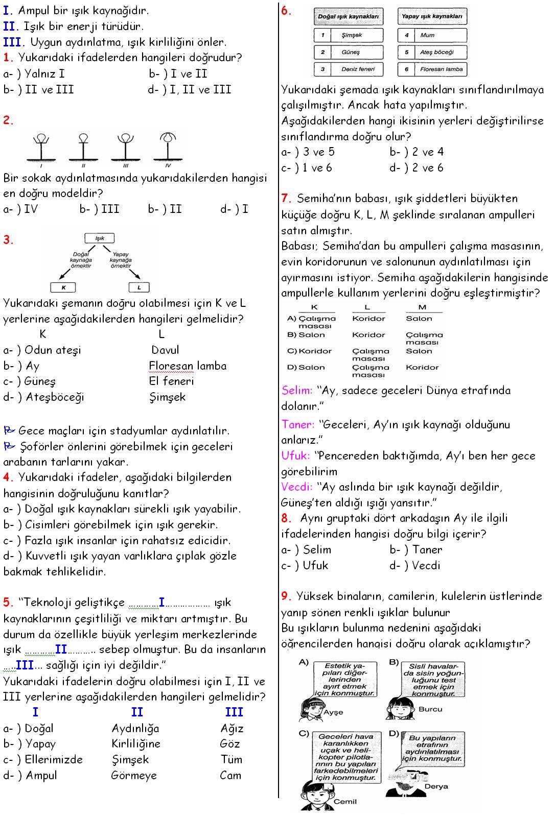 1. Aşağıdakilerden hangisi ışık kaynağına örnek olarak verilemez?