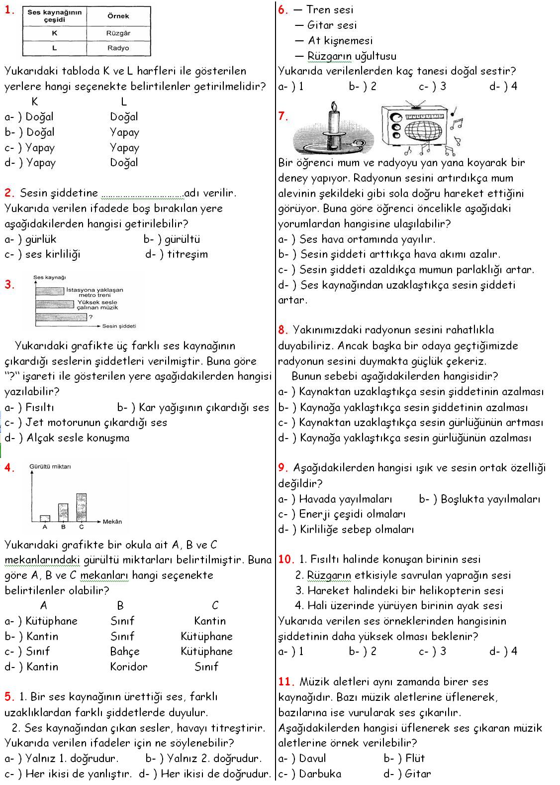 a- ) Kaynaktan uzaklaştıkça ses şiddeti yükselir.