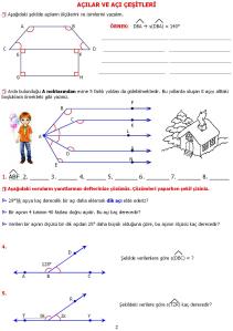 4. Sınıf Matematik Dersi Açılarla İlgili Problemler