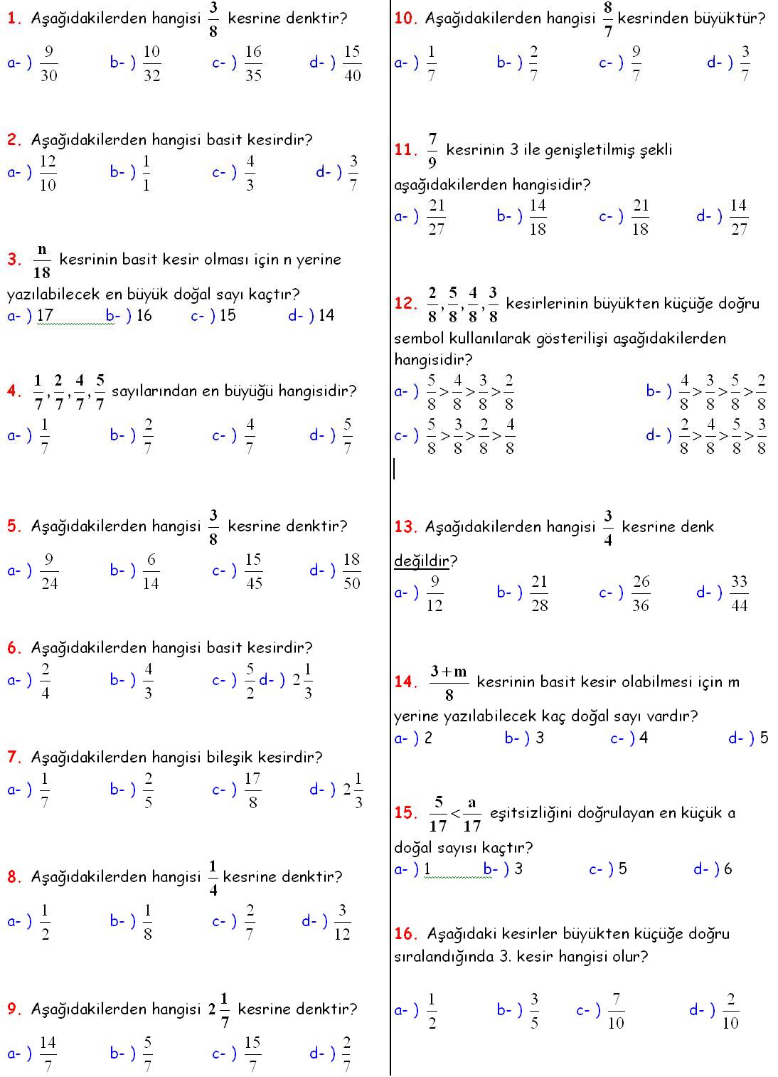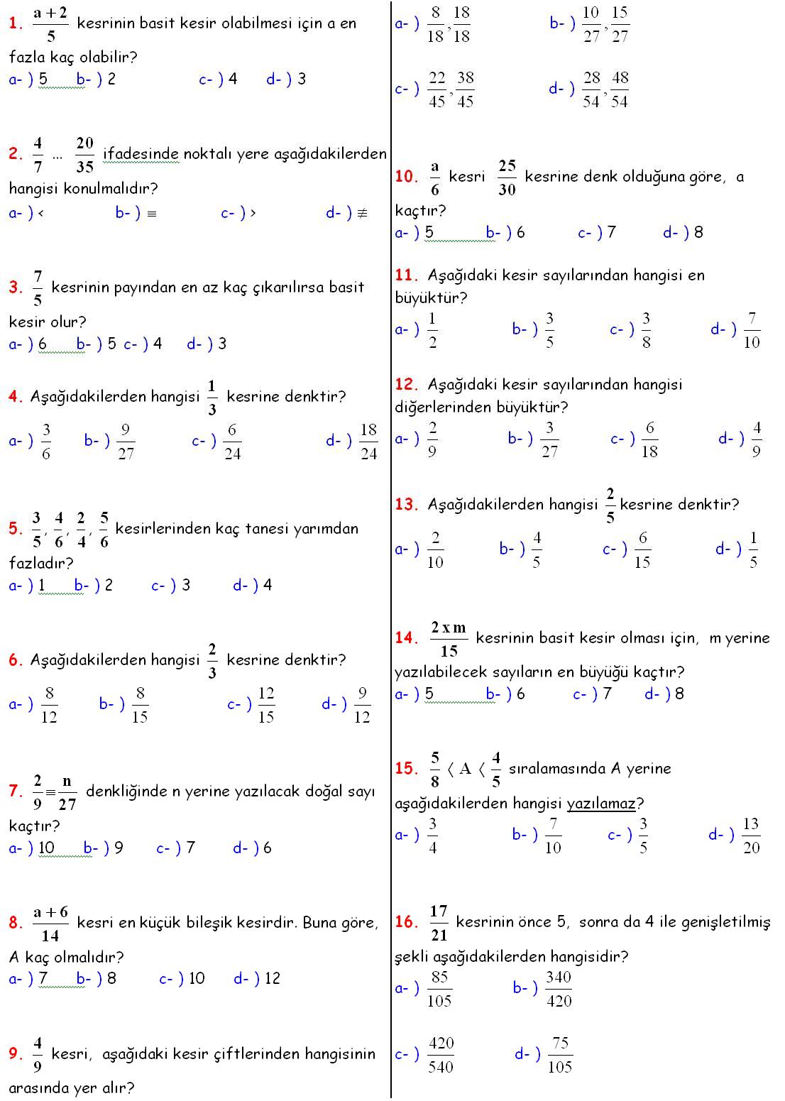 7. Aşağıdakilerden hangisi doğru değildir?