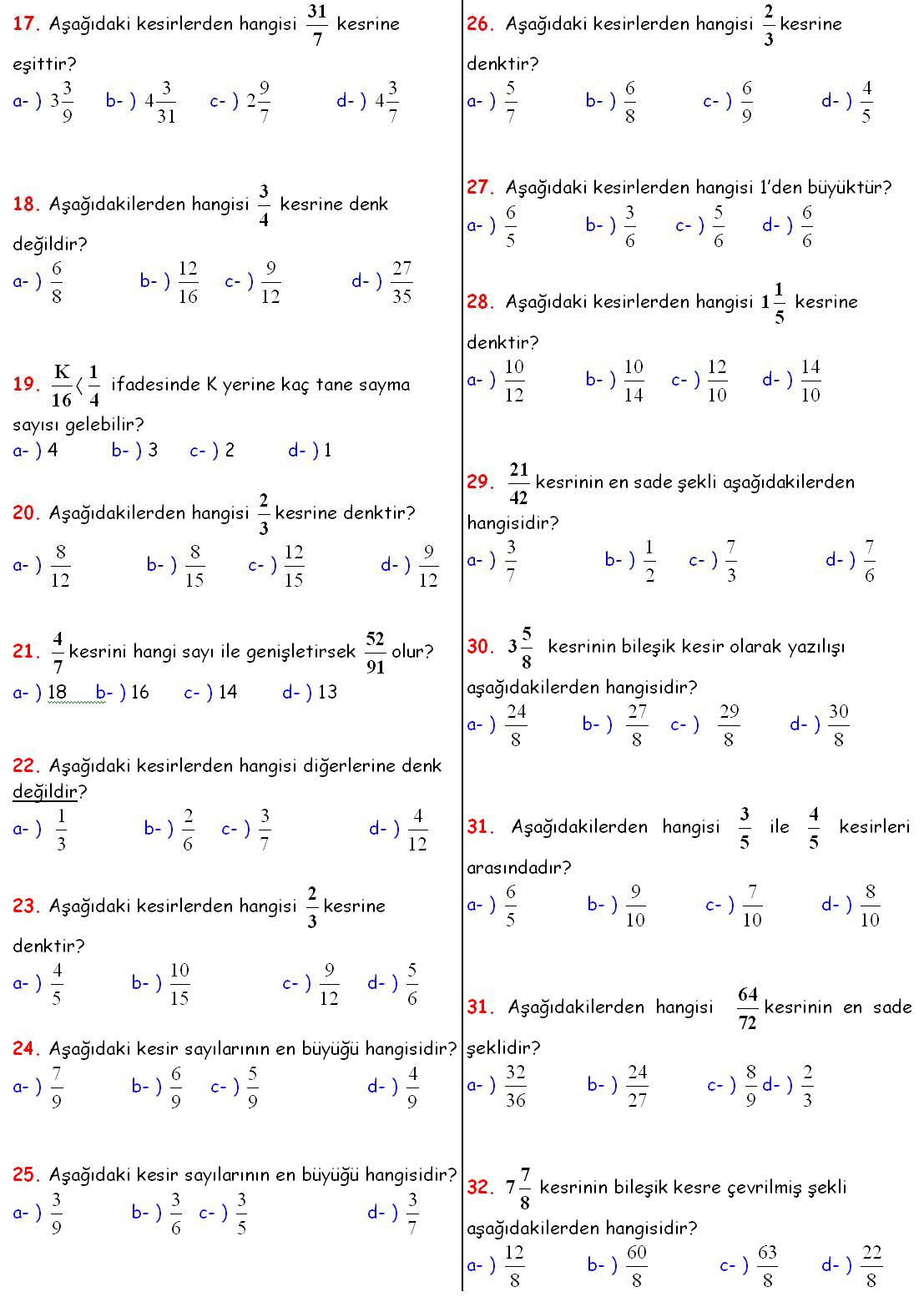 c- ) Pamuk d- ) Kiraz