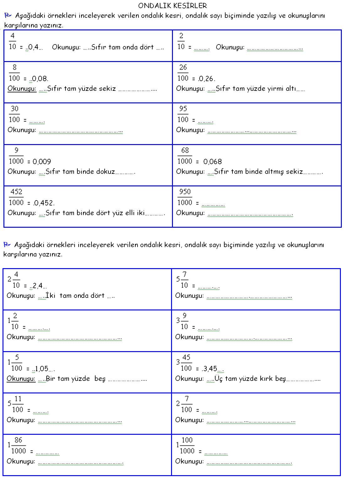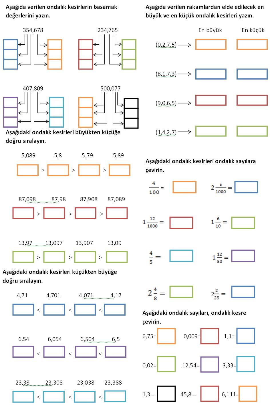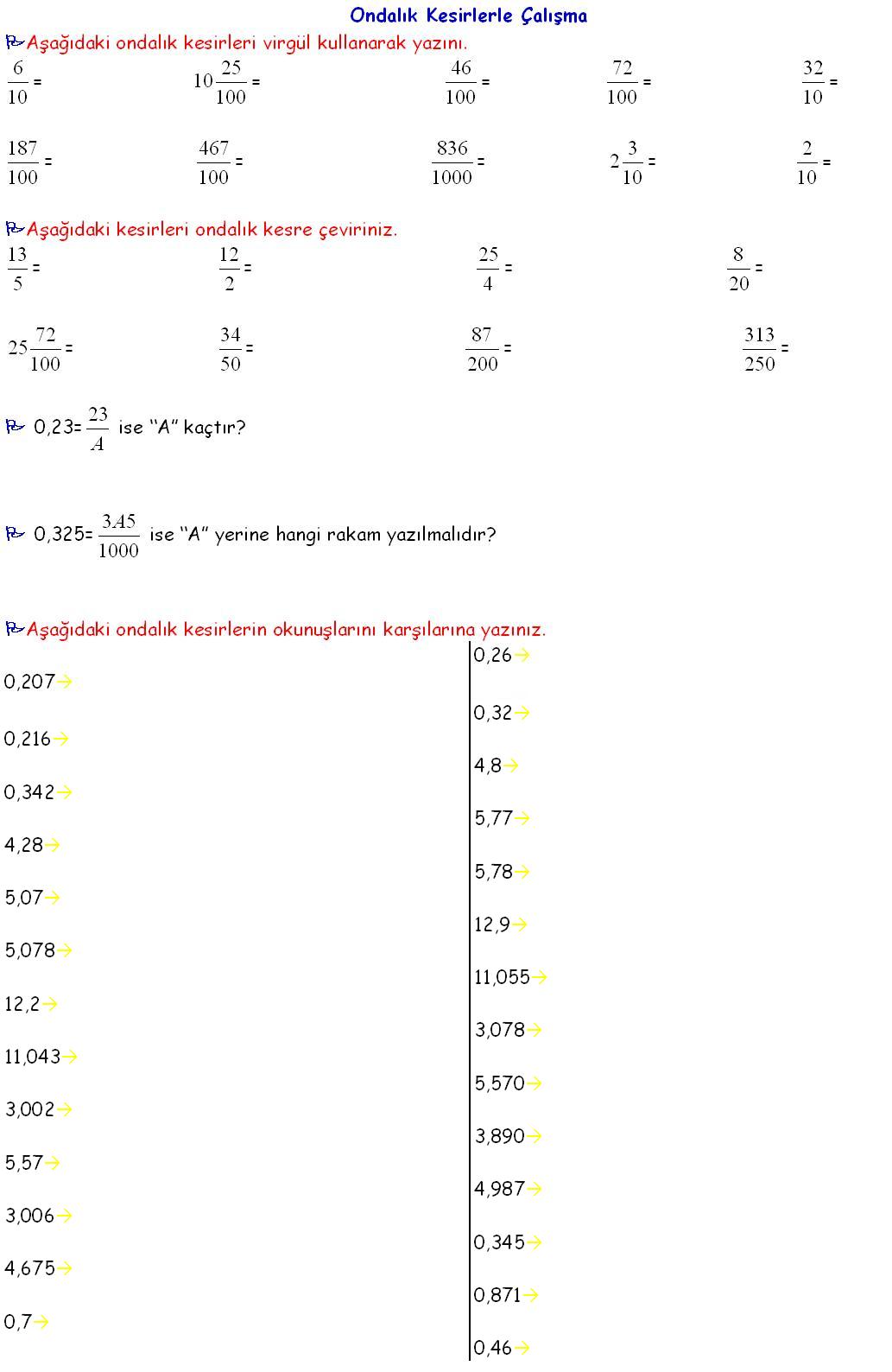 32. Aşağıdaki ondalık sayıları ondalık kesir biçiminde virgüllü biçiminde yazınız?