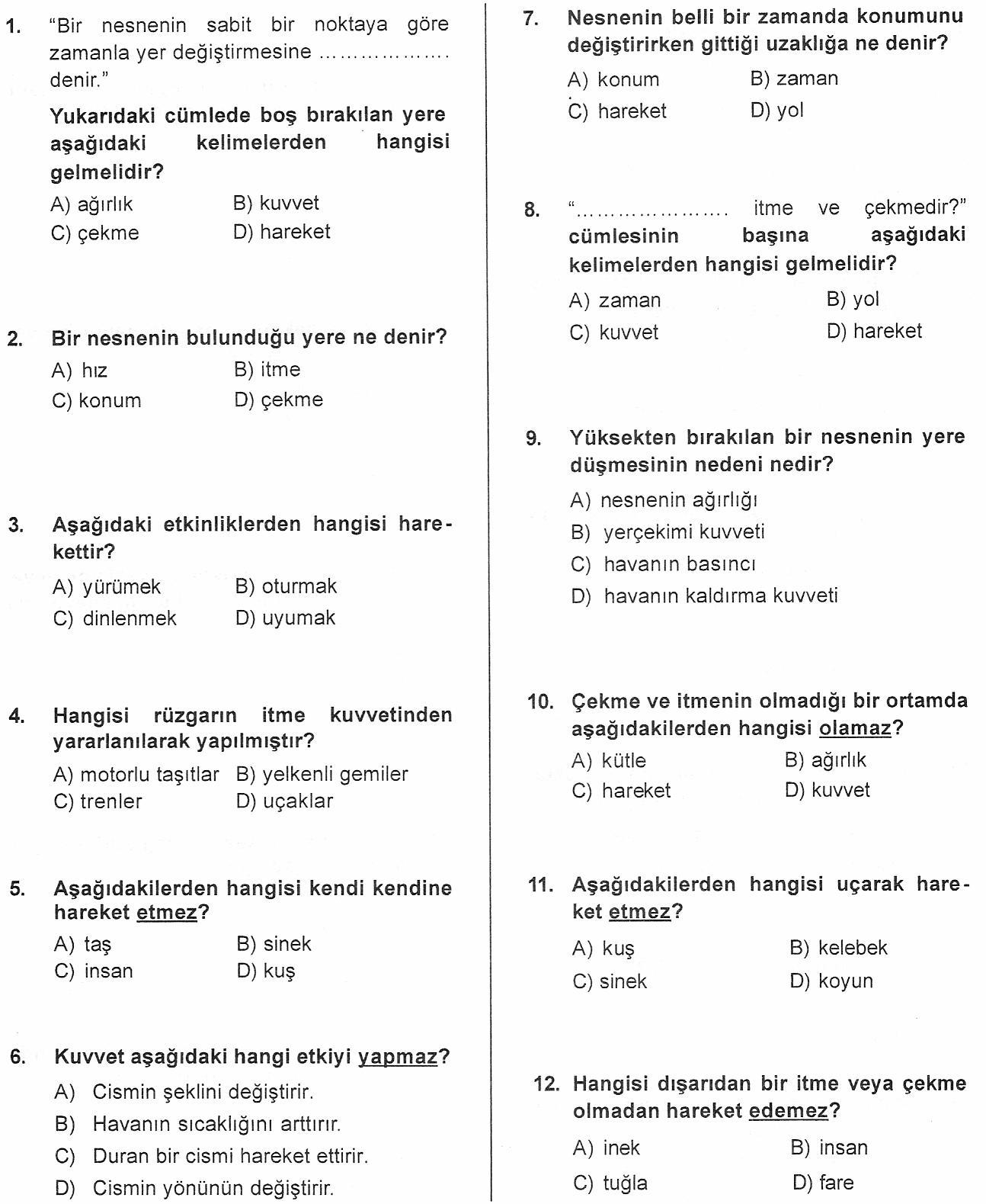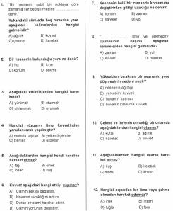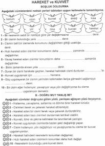 a- ) Hareket b- ) Kuvvet c- ) Isı d- ) Sıcaklık